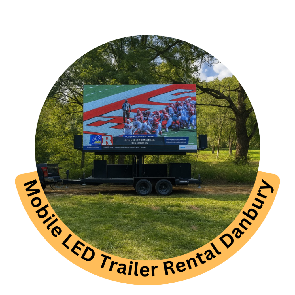 Huge Trailer delivers mobile LED trailer services throughout Danbury, covering neighborhoods such as Downtown, West Side, Brookfield, and Rogers Park. Our services also extend to nearby towns including Bethel, Newtown, Ridgefield, and Brookfield, ensuring comprehensive regional coverage for festivals, sports events, corporate functions, and outdoor screenings.
